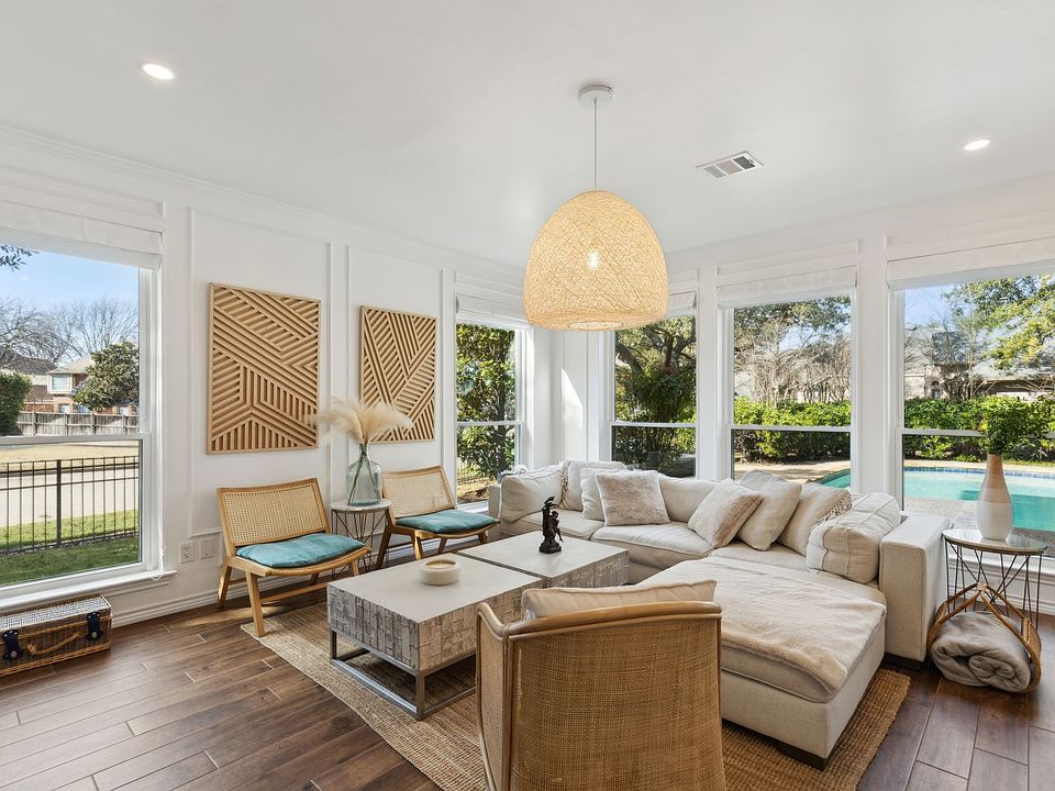 Step into this beautifully former model home and fully updated 4-bedroom, 2.1-bathroom home in the highly sought-after Stonebridge Ranch community. The interiors showcase a perfect balance of elegance and modern functionality. The spacious primary bedroom is a true retreat, featuring a luxurious spa-like bathroom and an adjacent private office, ideal for remote work or personal projects. Sunlight streams through brand-new windows, illuminating the open floor plan and highlighting the stylish finishes throughout.