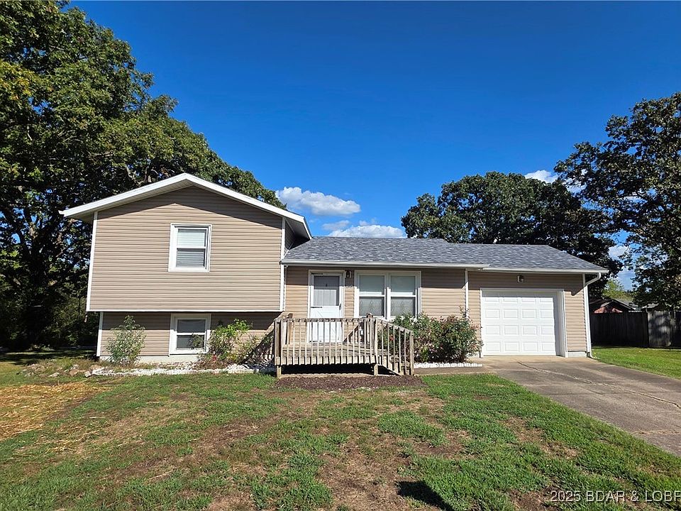 This 3 bed 1 1/2 bath split level sits in a block tucked away on the South tip of town with mostly residential traffic. It could be a perfect first home, or rental property! The big updates have been done! Brand new HVAC. New roof in 2024. Water heater. The windows, siding, electric, & furnace were replaced with a city block grant in 2017. Two bedrooms & the full bath with tub/shower are upstairs with the third and largest downstairs. A half bath next to it holds the washer/dryer hook-ups. Vaulted ceilings make the living area feel extra large. It's open to the adjacent kitchen and dining area. The kitchen has been updated with newer countertops, backsplash, & stainless double sink. A door off the back walks out to a spacious deck for sun-dappled morning coffee, or shady evening grilling. The front has a small porch with beautiful rose bushes already adding to the landscape. Large gentle yard trimmed with mature shade trees. The deep one-car garage has built-in shelves & cabinets with its own entry to the backyard & a newer opener. City water & sewer. New fiberoptic lines are currently being buried along S. Aurora St.