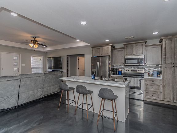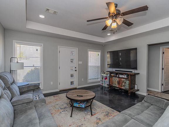 Discover this stunning contemporary brick and stone home in the sought-after Mockingbird Estates! Designed with style and comfort in mind, this home offers an inviting open floor plan, perfect for modern living. Enjoy the privacy of a split bedroom layout, elegant decorative ceilings in both the spacious living area and the luxurious primary suite, and a large walk-in closet. Unwind in the relaxing whirlpool tub/shower combination, or step outside to your covered back porch — ideal for entertaining or quiet evenings. This gem blends sophistication and warmth in every detail!