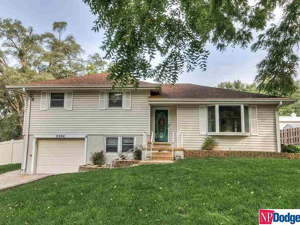 Charming move in ready 3 bedroom home with large backyard oasis featuring mature trees, a garden area, shed and relaxing water fall feature AND deck with retractable awning! Spacious kitchen with a plethora of cabinetry including soft close drawers, solid surface counter tops and eating area. Gather in he living room or bonus 4 season heated and cooled sunroom. All 3 bedrooms on the same floor. Newer Anderson windows. Vinyl siding, 2nd car parking pad, full privacy vinyl fence and sprinkler system included. Property is currently tax exempt. Close to schools, shopping and Offutt AFB! Furnace & AC 2014.