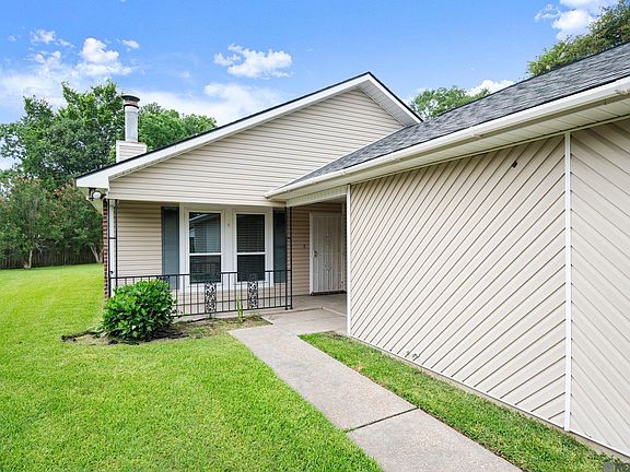 Welcome to this charming 2 Bedroom, 2 Bath home located conveniently off Millerville Rd. near I-12. Such a great location just minutes away from shopping, dining, grocery and other daily needs! This semi-open floor plan includes an oversized living room with a beamed cathedral ceiling and corner fireplace. The adjoining dining room offers space for a large dining table or an office area. The kitchen features granite counters and stainless appliances including refrigerator that remains. The primary bedroom has 2 closets and features a private en-suite bathroom. The second bedroom and full bath are on the opposite side of the home for privacy. Beautiful wood laminate flooring is found throughout the living area and bedrooms – no carpet! The fully fenced yard is spacious and a covered patio offers plenty of room for comfortable seating. NEW ROOF installed in 2025 for your peace of mind and low insurance premiums. Washer and dryer also remain for your convenience. Home qualifies for 100% financing with Rural Development loan and possibly closing cost assistance. Located in Flood Zone X.