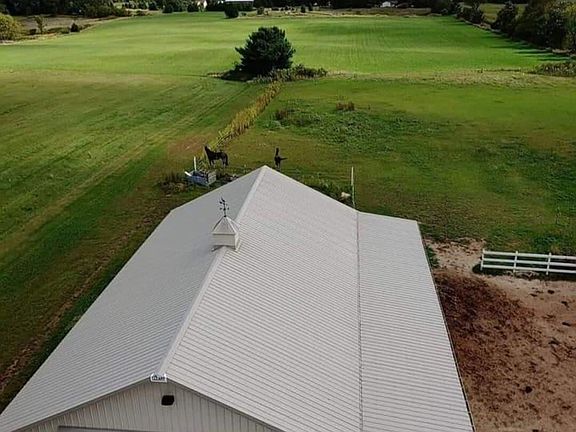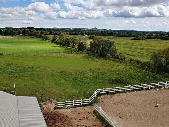 Bring the animals, cars, boats, RVs, in-laws, everyone! Almost completely renovated or new. The barn: 4 stall or 2 stall/2 washstall, tackroom, overhead doors, storage, automatic waterers & heated. 80 x 120 lighted outdoor arena. About 4 ac fenced pasture. The 3600 sq ft garage? Car lovers dream. Tall ceiling for a lift, hookups for compressor, welding, plus drains & heated floors. And the RV bay! Updated kitchen & impressive dining/living area w vaulted ceilings. Garage was converted into ensuite w bath, bed & office. Huge main floor laundry, Primary suite includes immense bathroom, skylights & even a dog cave! Outside deck is composite w hot tub & don't forget the pool. Extra outbuilding, views of Holy Hill & right off the snowmobile trails too! Read update list & get to your new oasis!