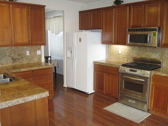 Sharp condition, granite kitchen counters with full b/splash, stainless appliances, gas stove, cinnamon cabinetry, granite-face FP in FR, laminate flooring downstairs, 5 true BR's (1 BR down), Jacuzzi tub in MB, water softener, byard landscaped with colored stamped concrete patio, pond and lots of greenery. Shows well.