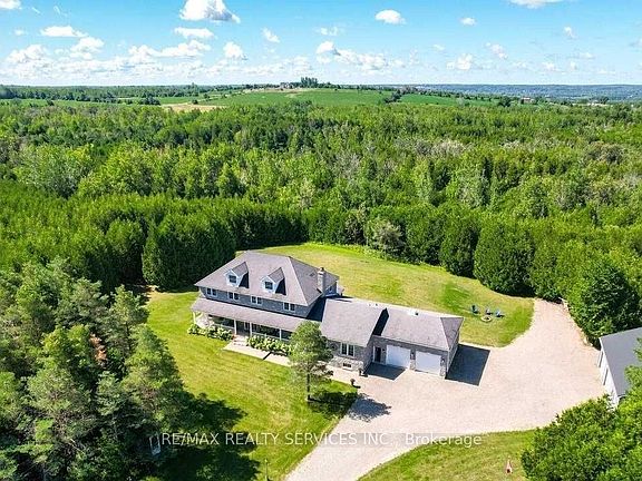 Rare 10 acre estate minutes to Orangeville! Custom Built Home offering 4,100 sq ft above grade and over 6,400 sq ft total living space with 6+ bedrooms, 4 bathrooms, including 2 bedrooms on the main level with their own separate entrance, a full bathroom, and a kitchen offering rental potential, and multi-generational potential. Features include a finished basement with separate entrance, 30x40 ft steel workshop with office, C-can with electricity, wood shed, private trails, creek, screened sunroom, theatre room, and oversized garages. Basement layout offers potential to be converted into up to 4 additional bedrooms for rental income, making this a unique opportunity to live, work and unwind in a private country setting.