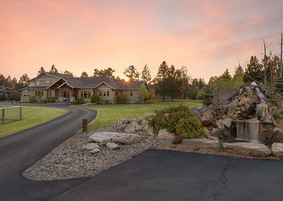 In the heart of Tumalo, nestled amidst sprawling pastures & the Deschutes River sits an extraordinary estate that has been meticulously designed for the ultimate living experience. The majestic entrance, flanked by a dining room & office, leads to the beautiful great room w/ vaulted ceilings, custom finishes, & a view of the river. The kitchen is replete w/ high end appliances, a large central island, & a butler's pantry. The ADA-compliant primary suite & guest suite include heated bathroom floors. At the home's south end you'll find a laundry room, access to two garages, & the entry to an incredible game lounge featuring a floor-to-ceiling stone fireplace & a bar w/ sink, microwave, & beverage fridge. Two staircases lead upstairs to four guest rooms, a loft, & bonus room. The estate grounds feature a fenced & irrigated pasture, raised beds, mature trees, & a wonderful backyard gathering space w/ a custom hot tub, concrete fire pit & covered patio, just steps from the Deschutes River.