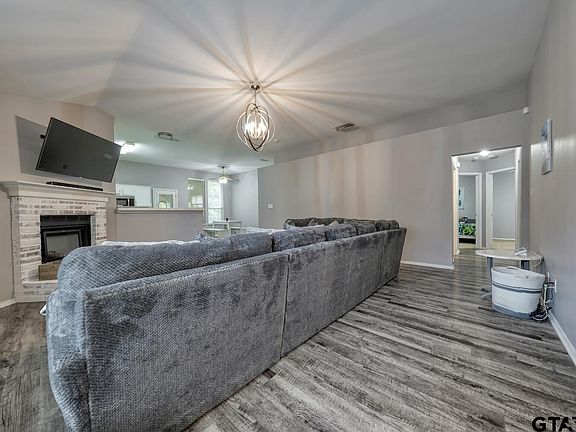 Discover modern comfort and style at 20041 Meadow View Lane in Flint, TX but Whitehouse ISD! This meticulously renovated 4-bed, 2-bath home boasts a spacious 2-car garage and a thoughtfully designed split floor plan. Step inside to find new vinyl plank flooring and fresh paint, creating a welcoming atmosphere. The stunning kitchen features new stainless steel appliances, a stylish backsplash, and a generous island – perfect for culinary adventures. Relax in the spacious living area with a focal point fireplace, ideal for gatherings. The luxurious owner's suite offers an attached bathroom with double sinks, soaking tub, and walk-in shower, plus a walk-in closet. Two guest rooms share a second full bath with the 4th bedroom split. Enjoy year-round comfort in the heated and cooled sunroom overlooking the mature yard and fully fenced lot. Additional features include storage shed, a laundry room, and ample storage. Conveniently located near shopping, dining, and recreation, this home offers suburban serenity with urban convenience. Don't miss out – schedule a showing today!
