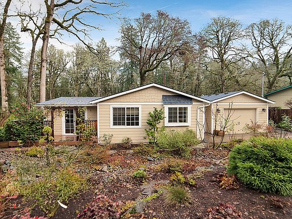Modern & completely updated one-level with fabulous mature gardens. Open and easy-flowing floor plan with skylights and extra large windows. Engineered hardwood throughout. High-end stainless steel appliances and custom cabinets. New roof in 2016. Third bedroom/home office with built-ins. Enjoy an incredible variety of flowering plants, fruit trees, and berry bushes from two decks--one off the master. Auto sprinklers. Coveted West Linn-Wilsonville schools. Shopping, restaurants, shops nearby.