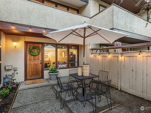 Welcome home to Madison Park Manor, a 5-unit boutique building in a consummate location. Dining, shopping, and a multitude of errands at your fingertips, nestled along the beaches of Lake Washington. Timeless contemporary design, and private al fresco patios, front & back, define this rare unit featuring; hardwoods, sleek gas fireplace & a gorgeous, remodeled kitchen with French doors leading out to enclosed terrace/grilling area. The upper-level bedrooms have vaulted ceilings, ample closets, and tree-top deck off the primary. Loads of fresh updates throughout; new paint, windows, carpet, bathroom flooring, vanity and lighting – plus, the HOA recently installed a new roof! 2-car assigned parking off alley. A true lock-and-leave townhome.