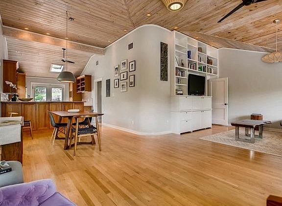 Classic Travis Heights home updated for modern buyers. Vintage pine floors accented by vaulted pine ceilings give a warm, welcoming feeling to an open floorplan. Kitchen ready for chefs: custom cabinetry, stainless appliances and a new Jenn Air Professional Range. Meticulous detail throughout: Nelson lighting fixtures from Design Within Reach, California Closets, skylights and large, low-e windows. Carefully maintained: recent roof, interior paint, recessed lighting and high-end fixtures. Walk to SoCo.