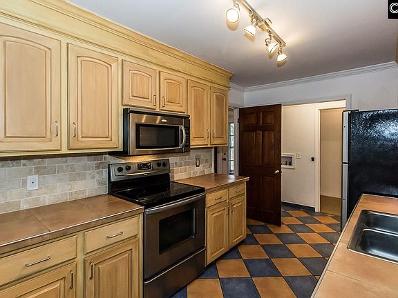 - Kitchen: Eat In, Pantry, Counter Tops-Tile, Galley, Cabinets-Natural, Floors-Tile, Backsplash-Other
