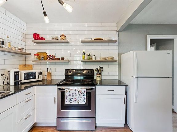 This cute and comfortable 2-bedroom, 1-bathroom home has the perfect mix of charm and modern style. Inside, you’ll find beautiful original hardwood floors and an updated kitchen that really stands out—with quartz countertops, floating shelves, and a subway tile backsplash that goes all the way to the ceiling. The bathroom has been nicely updated too, featuring a walk-in shower with crisp white subway tile and a sleek frameless glass door. Both bedrooms are bright and cozy, and the whole house feels fresh and inviting. Outside, there’s a good-sized yard—perfect for relaxing, gardening, and entertaining. This home is move-in ready and full of charm. Conveniently located just minutes from Broadway Extension, Hefner Parkway and the Kilpatrick Turnpike for easy access anywhere in the metro!
