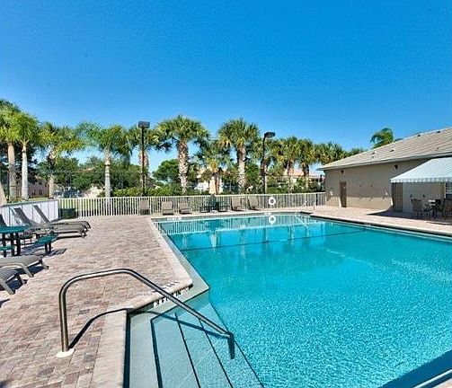 Beautiful golf course view without the golf fees. Great school district. You can practically walk to elementary and high school. Corner unit with vaulted ceiling and numerous windows that make it feel even bigger and brighter. Watch the sunset from your lanai. This is a pet friendly community offering a community pool and spa, clubhouse, public golf course, tennis courts, community room, play area, fitness center and barbecue area. Arrowhead Golf Club is a public golf course located within Heritage Greens with 18 holes, a clubhouse, putting green and driving range. Residents receive a discount on golf fees. Heritage Greens is only 30 minute drive to the airport, conveniently located near shopping, dining, I-75 and medical facilities. A rated school district!