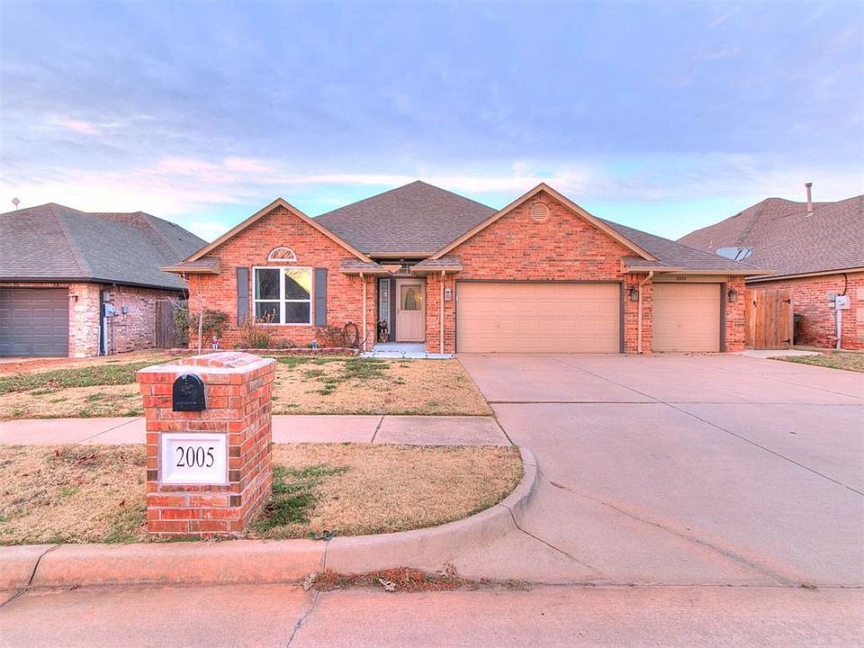 Step inside this beautiful 3 Bed, 2.5 Bath large home filled with oversized rooms. Walk in the door to your new living or dining space. Enjoy open concept living with the large living, kitchen area, featuring custom built-ins and exposed brick. The kitchen is a chefs dream with a built in gas cook top and large island. There is ample cabinet space for even the biggest collection of pots and pans, as well as a large pantry. The backyard features a large covered patio, full fencing and a convenient 6-person storm cellar for that Oklahoma weather is found inside the three-car garage. HOA $470 year with two community pools, gorgeous landscaped pond areas stocked with catch and release fishing all surrounded with beautiful walking paths, all just half a block away from the front door. Come see this amazing home in a coveted Edmond neighborhood!