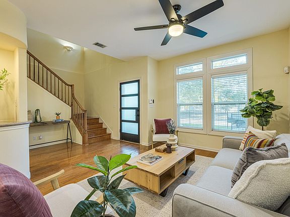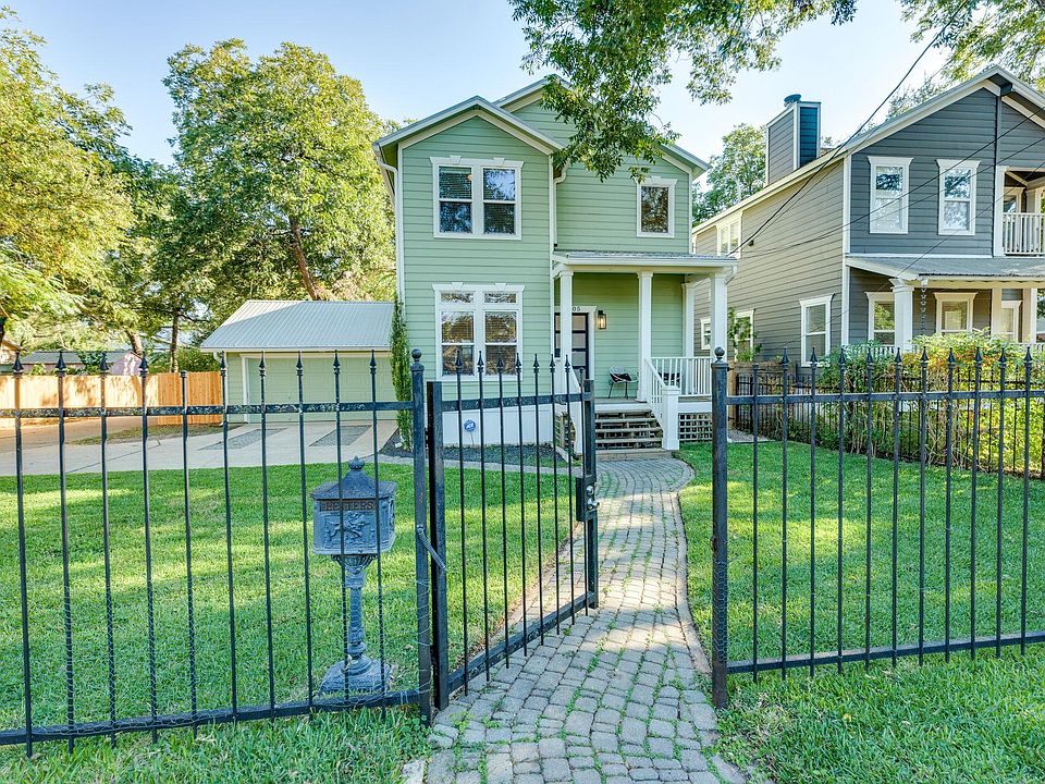 This craftsman style home is conveniently located just minutes from UT, downtown Austin, Dell Children's Hospital and all the desirable dining spots along Manor Rd. A truly walkable property. This perfect blend of cozy traditional with modern touches throughout including a dry bar with built ins, custom pantry cabinetry, and adorned with windows. On the main floor you are greeted with arched walkways, an open living and dining space with a kitchen overlooking the back living space. An additional room downstairs could be the perfect home office, media room or 3rd bedroom. Upstairs the primary suite features vaulted ceilings, a jetted tub, separate shower, separate vanities and a large walk in closet. A secondary bedroom also features vaulted ceilings and two large wall closets. Across the hall is a third bathroom and utility room. The fully fenced with electric gate leads to a rare full 2 car garage.
