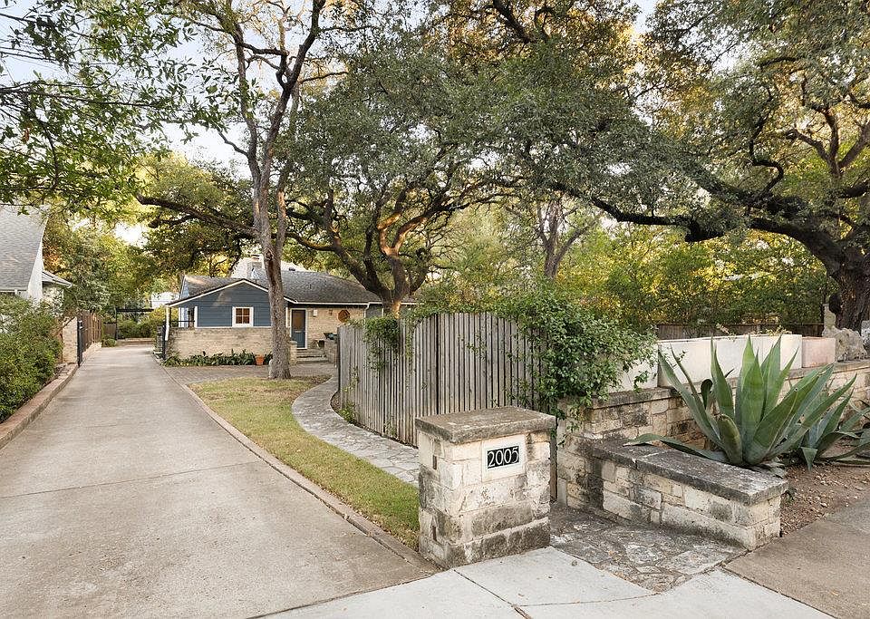 From the street, this Tarrytown home appears to be a charming two-bedroom cottage — but step inside, and you’ll discover a beautifully expanded residence that dramatically opens up in the back. The original 1940s structure retains its character with timeless finishes, while a thoughtful 1990s addition brings generous living spaces, a spacious office, and a serene primary suite perched above the garage. The heart of the home is an inviting living area framed by walls of windows and views of incredible heritage trees. The gated front yard creates a sense of privacy and seclusion, with room for kids or dogs to safely play. The oversized two-car garage includes a converted single bay that now serves as a bright gym or secondary office with tons of conditioned storage. Blending vintage craftsmanship with modern comfort, this property delivers the best of Tarrytown: classic curb appeal, expansive interiors, and the rare luxury of space, shade, and quiet... just minutes from downtown Austin.