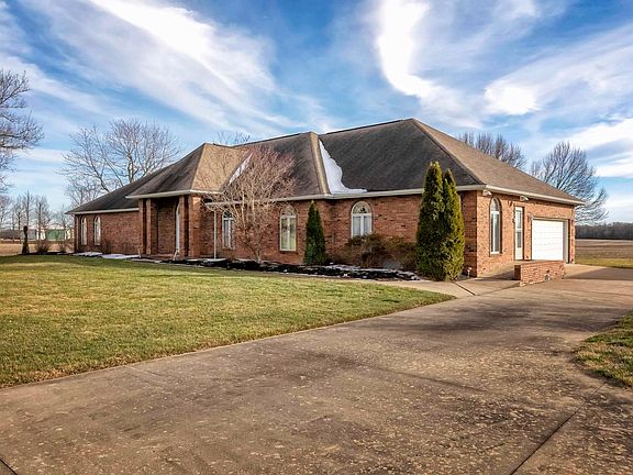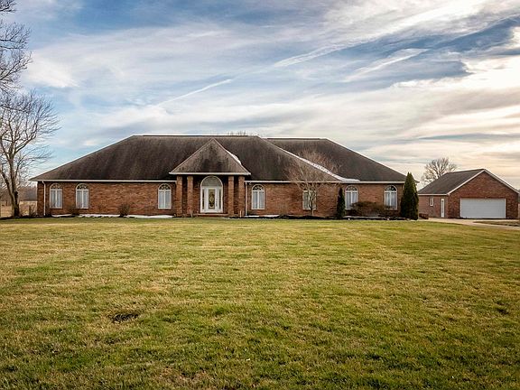 This home is a rare find. It has everything you would want in this beautiful all brick, custom built home sitting on 7 acres. It is all on ONE LEVEL w/ a parcel unfinished basement excellent for storms. The Seller thought of everything! 9 ft ceilings with some being even taller making the space look even larger. The Kitchen features light color cabinets with Corian Counters and a large Island and Pantry. Beautiful brick gas fireplace in the living room for a cozy feel opens to a all seasons sun room looking out over the large yard w/ mini split. Master Bedroom w/ tray ceiling, has enough space for sitting area, large walk in closet and attached Master Bath. Large walk in shower & vanity for getting ready. Bedrooms are all excellent size with plenty of closet space. On the opposite side of the house they currently use as an office but would make a excellent mother in laws suite for it has its own entrance from outside & bathroom or game room. Laundry Room has utility sink and cabinets w/ folding space & extra range for when you have family for holidays and cooking. Separate 2 car garage that is insulated. Whole house generator 2022, 2 Geo Thermal HVAC 2022 making utilities lower, EV car charging station in garage. Lawn is irrigated, Super insulated spray foam house plus r49 blown in. Most furniture stays except Master Bedroom & Living Room. Don't miss out on this AMAZING HOME!