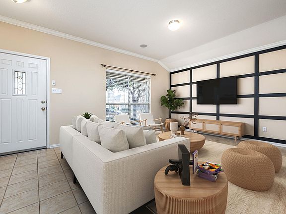 Welcome home to this stunning one-story former Centex model—designed to impress and meticulously maintained! Step into an open-concept layout where tile flooring flows seamlessly through the spacious kitchen, living, and dining areas, creating a bright, clean, and inviting space for everyday living and entertaining. The primary suite is a true retreat, featuring warm wood flooring and a private bath with ADA-compliant doorway access for added convenience. Secondary bedrooms are comfortably carpeted, and you’ll love the charming built-in art/picture niches—perfect for showcasing your style and favorite pieces. At the heart of the home, the kitchen shines with sleek black granite countertops and a built-in work desk, ideal for meal planning, homework, or a tucked-away home command center. Need space? The oversized garage is a rare bonus—room for storage, a workshop setup, bikes, and more. Flexible and functional, this home can live as a 3/2 or 4/2, with the extra room ready to be your office, gym, hobby room, or guest space. Prime location, great condition, and model-home charm—this one is a must-see!