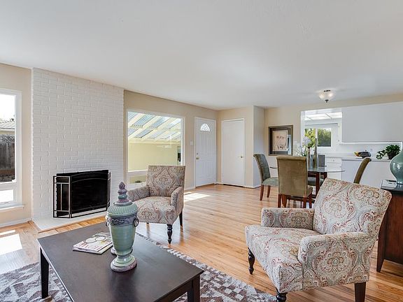 Charming home on a corner lot with inviting gated & covered entryway. Cross the threshold into an open and airy living space with refinished hardwood floors. Living room/ dining room with light flooding double pane windows surrounding a brick fireplace. The kitchen has a new sink and counter tops and an open pass through to the dining area. Master suite offers full bath and double closets. Hall bedroom has a sliding glass door leading to a deck into the backyard- a hidden oasis! 2 additional bedrooms & another full bath finish the interior of this 4 bedroom, 2 bath home. The expanded courtyard/patio is perfect for entertaining. 2-car detached garage with laundry area and additional storage area. New paint inside and out, all new vinyl floors in bathrooms and all new landscaping on this lovely property. Close to schools, shopping, restaurants, commute routes, and downtown Redwood City.