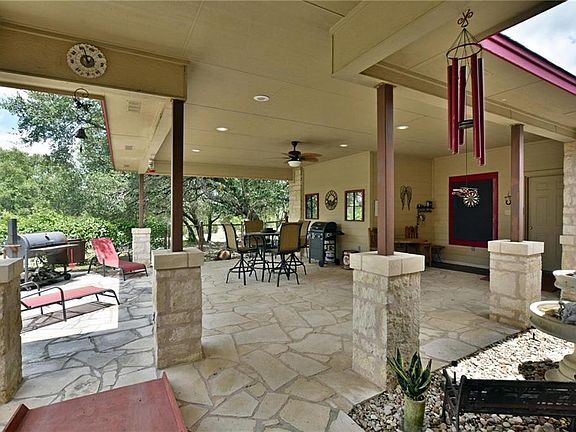 This unique property offers gated access in a private acreage community only minutes to schools and shopping in Burnet. Perched on a ridge, the home enjoys a panoramic view of the rolling Hill Country. Enjoy breathtaking sunsets from your expansive limestone courtyard patio surrounded by beautiful oaks trees. The home has had renovations and is beautifully appointed with original hardwood floors, open kitchen with granite island, separate dining room, living room and great room with custom bar for entertaining as well as spacious guest bedrooms connected by jack and jill bathroom. The detached, over-sized garage provides lots of workshop and storage space, and is connected by limestone pathway through majestic iron passage gate.