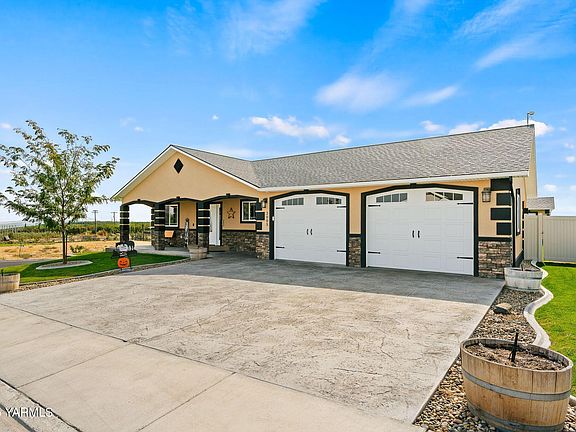 Perched on a hill with sweeping valley views, this 3-bedroom, 2-bath stucco home showcases an open-concept design with high-end custom finishes and durable porcelain tile flooring throughout. The kitchen features a large island that seamlessly connects to the living area, creating the perfect space for both daily living and entertaining.The private primary suite offers an oversized walk-in closet and a beautifully tiled walk-in shower. Additional highlights include a spacious 2-car garage with ample storage, a covered patio, vinyl privacy fencing, and a full sprinkler system.Quality construction, a prime location, and thoughtful details throughout make this home ready for its next chapter.