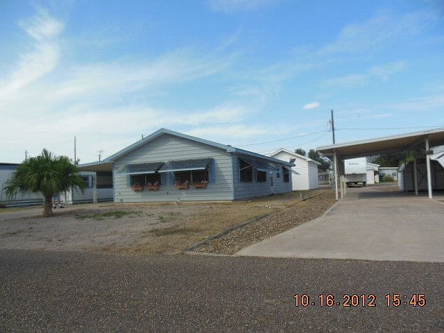 MLS # 160650 - Mission Spacious modular home on a slab foundation, storage bldg and carport for an RV with alley access 55+ Community$32,000 PENDING!!!!