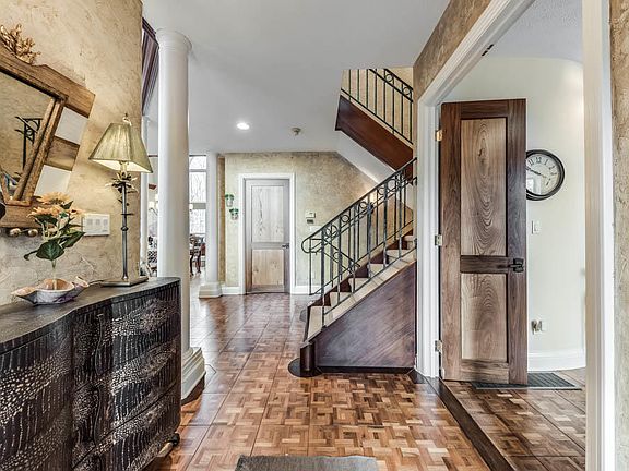 Private and close in. Custom built and designed by local artisan craftsman, Ernie Gross, as his private residence. Unique, one of a kind features throughout the house. From etched glass interior doors to chef's kitchen, no detail is left out. A showplace for entertaining but comfortable for family movie night in the media room. Bedrooms have custom built-in furniture. Master has two-sided fireplace, sharing with jetted tub and steam shower. A must see for fine comfortable living.