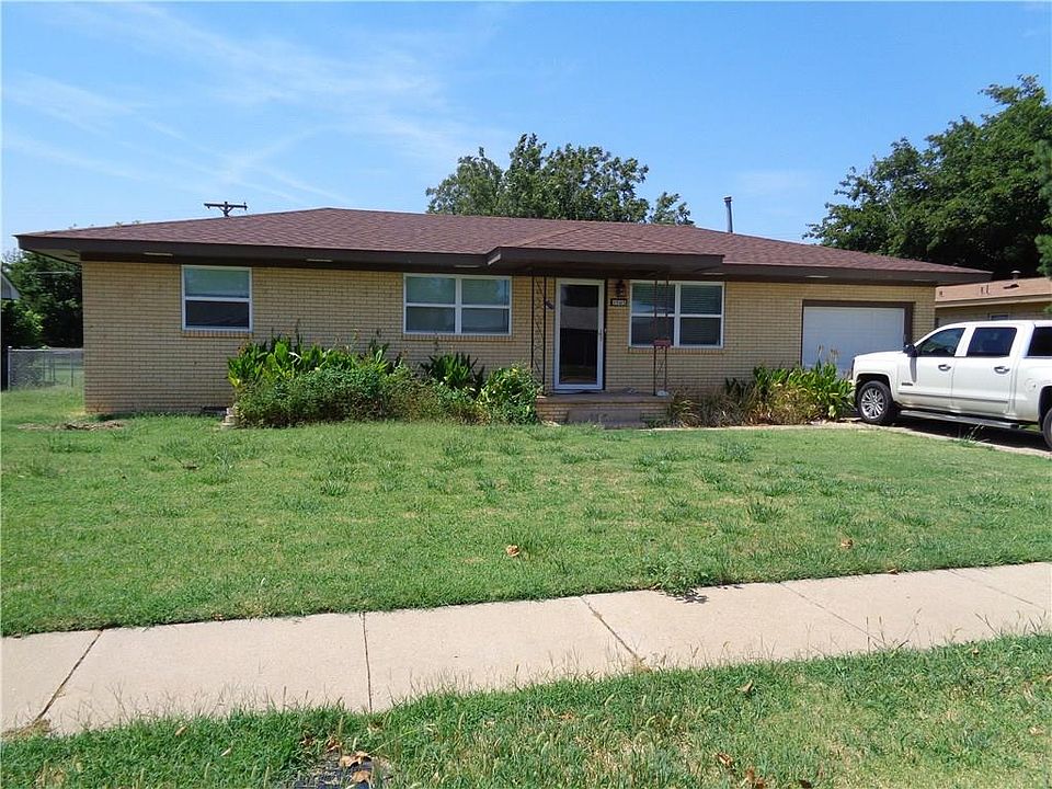 3 Bedroom 1 bath brick home. Current updates include roof, windows, attic and exterior wall insulation, ceiling fans, custom window blinds, exterior paint and facia and soffit boards. Bathroom has solid surface countertops. Large back yard with storage building and patio area
