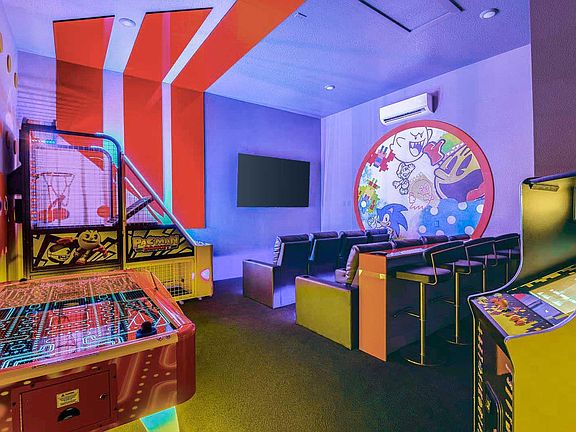 Minutes from Disney and Orlando's top attractions, this exceptional resort features an expansive, ultra-unique villa with incredible resort amenities. Guests receive complimentary access to a covered playground, sports courts, and a grand resort pool with a lazy river, water slide, and on-site dining. Bask in beautiful Mid-Century Modern design from the minute you step into the clean-lined, high-ceilinged foyer. Continue into the vast, open-plan great room at the heart of the house, which invites you to linger on velvety couches and chairs. Turn on the oversized TV or lay down a challenge on the pool tablea focal point of this stylish space. Start planning your menuthis bright, airy kitchen is fully equipped with all you or your chef will need to create masterful dishes. Admire the fine design of the custom blue and white cabinetry, brushed brass fixtures, high-end finishes, and light wood grain floors. Sip coffee or a cocktail at the kitchen island with stools, or set up the long dining table for a delectable feast. Feel like a VIP in the private theater complete with comfy seats, an 86-inch screen, and surround sound. Between screenings, enjoy classic arcade games like Pac-Man. Outside, enjoy a swim in your private pool, soak in the spillover spa, relax in a poolside lounger, or play foosball. Pool heat is available throughout your stay for an added fee. The outdoor patio features a grill available for a small add-on fee, covering propane refills, cleaning, servicing, and power washing. This home is equipped with one Pack n' Play and one high chair, with additional available for rent. The driveway accommodates up to 3 cars with parking passes, and additional limited parking is available nearby on a first-come, first-serve basis. Beyond the villa, experience all of Orlando's famous attractions and dining destinations, including Disney Parks, Universal Parks, and SeaWorld, all within a short drive. World-class shopping and dining are just 28 to 40 minutes away, and groceries and convenience shops are a quick 6 to 10-minute drive. Enjoy all the luxe amenities reserved for guests of Solterra Resort, including tennis courts, a lazy river, and a fitness center. The kitchen and bathroom are stocked with essentials to get you started, perfect for late evening arrivals. Plan to purchase additional items for the balance of your stay. Cars parked on the street will be towed, so ensure parking passes are placed in windshields. This property is not owned, promoted, affiliated with, or endorsed by Walt Disney World Resort, SeaWorld, or Universal Orlando Resort. Check out the fabulous upstairs loft that's a haven for indoor recreation or work. Linger on comfy couches, turn on the oversize TV, or challenge your crew to darts or poker. If duty calls, set up your laptop on the desk-and-chair workspace.