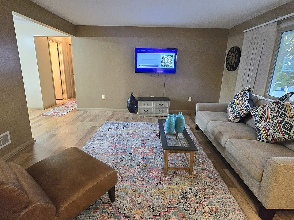 Very nice and spacious furnished, two bedroom apartment. Includes utilities, wifi and completely furnished with all essentials. Washer and dryer available. Off street parking. $1400/month. Can rent as short term (2 to 4) months or year lease.
