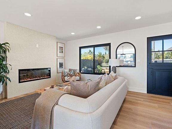 Welcome to the kind of home that just feels good from the moment you walk through the door. Completely reimagined and thoughtfully renovated, this single-level stunner in the sought-after Village Park community is more than move-in ready - it's a fresh start wrapped in sunlight and good energy. With 3 bedrooms and 2 bathrooms, the layout is open, airy, and effortlessly livable - designed for the way we live today. Natural light floods every corner. Everything is brand new, from the sleek floors underfoot to the stylish lighting overhead. The kitchen is crisp and modern with all-new cabinets, countertops, and a large pass-through window that connects directly to an outdoor bar - perfect for sunset cocktails or spontaneous weekend hangs. The primary suite is your personal retreat, featuring a walk-in closet, a bonus lounge area, and dreamy Pinky's Iron french doors that open to the backyard. Out back, you'll find fresh landscaping, a fire pit for cool SoCal nights, and plenty of space to dine, play, or just breathe it all in. What else? A brand-new roof with solar (PPA), a sleek electric fireplace, new appliances, updated furnace, epoxy-finished garage floors, and smart storage throughout. Every inch of this home has been designed to make life easier, brighter, and more beautiful. Plus, the low-cost HOA, which is just a short walk away, offers a pool, tennis court, and playground. This isn't just a remodel - it's a reinvention. And it's ready for someone to write their next chapter here. Come see it in person. We think you'll feel it too.