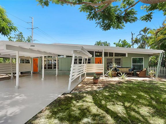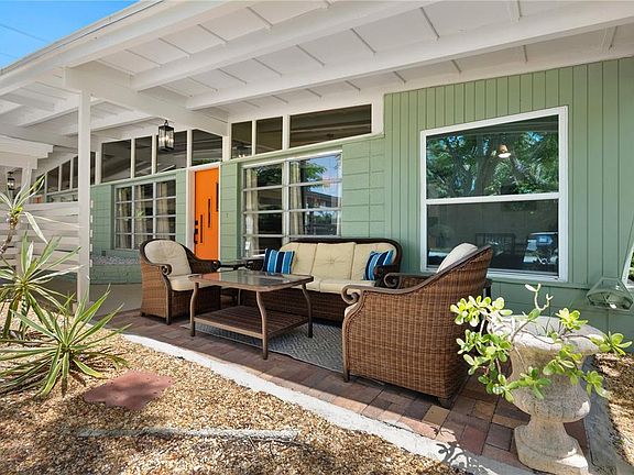 An updated jewel in the heart of Sarasota's historic South Gate neighborhood, this recently renovated and furnished bright home stands as a testament to the mid-century boom that shaped Sarasota. With two bedrooms, one bath and a separate enclosed sunroom/office with sliding glass doors should you need quiet while working, it has it all. Sunroom square footage not included in square footage under air. Lots of windows and skylights allow for natural light to pour inside. Three parking spots, privately fenced backyard and interior laundry room are all wonderful features. Positioned ideally, the location boasts more than just the city's dynamic arts scene, delectable eateries and beaches. Arlington Park is across Tuttle with public pool, tennis courts, basketball courts, playground, recreational facilities and large park with fountain.