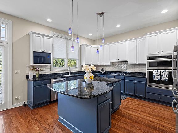 2005 Valor Court is a sophisticated, bright, and beautiful 4-story Georgian brick townhome in the heart of The Glen development, mere steps from Glen Town Center's upscale shopping, restaurants and movie theater. It features 3 bedrooms, 3.1 bathrooms, and 3210 square feet of refined living with many upgrades including hardwood floors and a majestic staircase. The spacious living room offers breathtaking architectural details including 13' cathedral ceilings, a bay window, ceiling fan and a lovely fireplace. The stunning kitchen, adjacent to the dining room, offers high-end stainless steel appliances, granite counters, custom backsplash, pantry closet, and an island. French doors lead to a large deck. The third floor is home to the striking owner's suite comprising a sizable bedroom with ceiling fan, a lovely separate sitting area, two large walk-in closets and a luxurious ensuite bathroom with his/her vanities, a soaking tub, and a separate shower. The laundry room is conveniently located off the owner's bedroom. The penthouse floor offers two more bedrooms with vaulted ceilings and a full bath. One bedroom boasts an arched window with plantation shutters. A handsome family room/office/bedroom and full bath are on the lower level. The home offers a two car attached garage with extra storage space. This remarkable home is walking distance to two golf courses, Gallery Park with jogging trails and playgrounds, Lake Glenview and the Glenview Park Center offering swimming, basketball and an impressive fitness center. The Glen's Metra train station is close-by with convenient service to Chicago's loop. 2005 Valor Court is not just a home, it's a lifestyle.