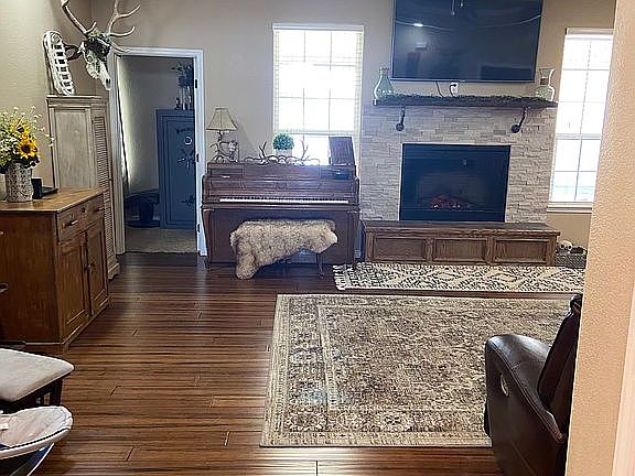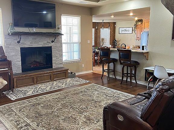 Home sweet home! This beautiful 3 bedroom, 2 bath home has 1594 square feet. With an open floor plan allowing you to see the living room and dining area, while cooking in the beautiful kitchen with new appliances! The living room is stunning with bamboo hardwood flooring and gorgeous new stone around the fireplace. Granite in the kitchen and laundry room. Recessed ceiling’s in living room and master bedroom. Tile throughout the house with carpet only 2 years old in all the bedrooms. The master bathroom has his and her sinks and walk-in-closets. Bonus, Both guest bedrooms also have walk-in closet’s with custom built in shelving. Wait there’s more, three spacious hall closets, sprinkler system, two car garage, and a shed in the backyard! Contact property owner today to view.