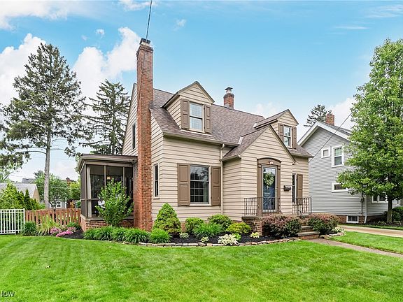 Charm and character abound in this well-maintained 3 bed, 1.5 bath Cape Cod with beautiful hardwood flooring and plenty of curb appeal! Through the front door foyer you'll find the open concept living room with fireplace and the dining room, both filled with natural light. Thoughtful touches of character can be found throughout the home, including built-in shelving in the living room, a built-in kitchen pantry, built-in cabinets in the dining room, and two fireplaces! The eat-in kitchen with stainless steel appliances and quartz countertops features views of the spacious backyard and convenient access to the rest of the first floor. Off the main floor hallway is the open staircase, convenient half bath, and a versatile bedroom or office with access to the screened porch. The second floor features two spacious bedrooms with walk-in closets and a full bathroom with laundry chute. The partially finished basement with Nature Stone flooring and gas fireplace offers great additional living space, storage, and a laundry area with an additional shower. On warm summer days you'll enjoy relaxing on the patio in the large, fully-fenced backyard or on the screened porch with views of both the front and back yards. Nearly every room is freshly painted and recent updates include new roof & gutters with leafguard (2022), new furnace & AC (2019), and new fence (2020 & 2024). Prime location with quick access to the Cleveland Metroparks Rocky River Reservation, I-90, I-480, and all of your shopping and dining needs. You can't beat the convenience of this location! 1-year America's Preferred Home Warranty is included. Move right in and enjoy!