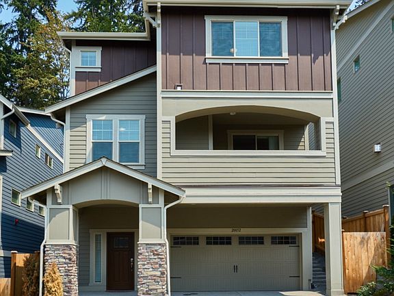 Like new 2014, 3 story home. Main level has hardwood floors, gas fireplace, office, 3/4 bath plus 2 covered decks. Kitchen includes granite counters, extra large island with eating bar, ss appliances, gas range, walk-in pantry. Master suite with gas fireplace, sitting room, walk-in closet, 5 piece bath. Additional 2 bedrooms, bonus room, full bath, laundry upstairs. Lower level bedroom is wired for media room and has ¾ bath. Close to shopping, dining, Hwy 522 & 405. Excellent Northshore schools.