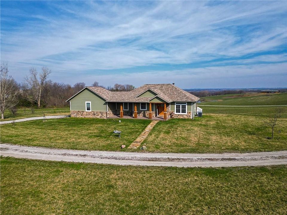 This home is NOT lacking attention to detail as it was a custom built home and it is a beauty!!! Absolutely MUST see this one to appreciate!! This gorgeous home is nestled on the beautiful countryside of the sought after Andrew County, Savannah School District but in close proximity to all the amenities of North St Joseph on a great 8 acre tract! The kitchen is equipped with the stunning black stainless steel, fingerprint resistant finish appliances, granite counters and high end custom cabinets! Fabulous open floor plan allows for great entertaining space! The main floor offers a fantastic master suite, main level laundry, and an additional guest bedroom and bathroom. The living room boasts a beautiful stone fireplace as the focal point of room! This home is extremely energy efficient with high quality double pane windows and cellulose insulation that provides for very low utility bills averaging less than $90 per month! Downstairs there is an additional bedroom with another bathroom and a very large recreation room. There is also a great storm shelter. There is a walkout from the rec room! The back of the home has a lovely all weather composite deck ! The outbuilding has a concrete floor, a walkout door, and a bathroom! There is also a doggie door from the garage with an area perfect for a small kennel/dog house and indoor/outdoor grass perfect for your dog!! There are fruit trees to the west that just wrap this beautiful home up in a little bow!