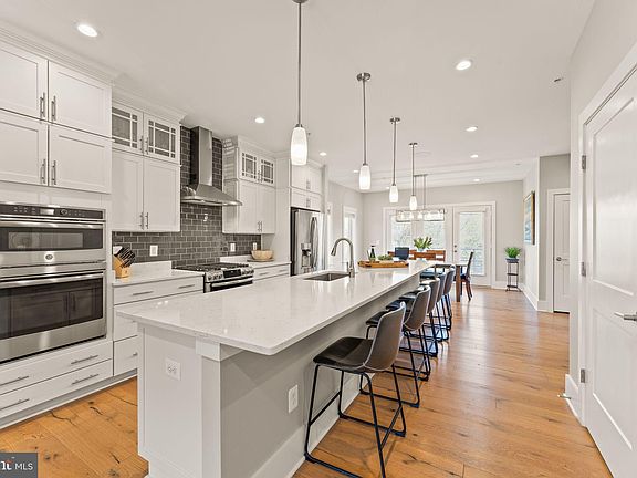 Luxurious End Unit 4-level Townhome with stunning pond views, modern amenities, and a great location! Discover this highly desirable, like-new end unit 4-level townhome on a premier lot in the school district for Belmont Station, Trailside, and walking distance to the Stone Bridge High School district. Offering breathtaking views of a serene pond and direct access to the WO&D bike trail. There are over $80,000 in upgrades from the Builder and an additional $25K in after-market upgrades from the owner in this gorgeous home. Designed and selected by the owner with elegance and functionality, this home features 9-ft ceilings, wide plank hardwood flooring, 14 ft Quartz island, an extended deck, upgraded light-colored hardwood flooring, countertops, vanities, ceramic tile, extra recessed lighting, and modern finishes, creating a bright and sophisticated place to call home. The like-new home offers the latest home efficiency and style, custom blinds on all windows/doors, a security system, multi-media wiring, and a maintenance-free lifestyle for active homeowners. Step inside and be welcomed by an expansive open floor plan on the main level, highlighted by oversized doors and windows that flood the space with natural light and provide unobstructed pond and tree views. Sit in the spacious dining area and enjoy the private view through a wall of windows that leads to a custom-expanded deck — perfect for outdoor entertaining. The living room features a cozy linear fireplace, another wall of oversized windows/doors for abundant natural light, and a walkout to a balcony, offering an ideal spot to unwind. The heart of the home is the chef's kitchen, featuring an oversized 14 ft Quartz island with an integrated Kohler sink and seating for six. This dream kitchen has gourmet stainless steel appliances, including an upgraded gas range, microwave, and a built-in oven. The upgraded ceiling-height white cabinets are stunning. The walk-in pantry with custom shelving offers ample storage, while a separate butler/coffee bar with an additional beverage refrigerator makes entertaining a breeze. The second level boasts two luxurious primary suites with spa-like bathrooms, providing a relaxing private retreat. Upgraded ceramic tile on the floor, beautiful designer tile in the frameless glass showers, double vanity sinks, and a floating vanity will bathe you in luxury. Large walk-in closets, hardwood flooring, extra windows for more natural lighting, and tall ceilings convey sophistication and elegance. For ease of use, the upgraded laundry is located on this floor. The top level is designed for entertaining and features a kitchenette with a beverage center, dishwasher, and custom cabinetry. The large family room is perfect for family movies or gameday parties. Step out onto the spectator terrace and enjoy barbecues, wine tasting, or family time while enjoying the picturesque views. The loft level has a spacious bedroom and a modern, elegant full bathroom for your family or guests along with additional storage. Additional living space on the lower level includes a flex room ideal for a home office, gym, or study area and a half bathroom. Walk out to a private backyard with direct bike trail access and other walking trails. The attached 3-car tandem garage includes a ChargePoint EV Charger on a 60A circuit and added shelving for additional storage. This like new townhome is located near Starbucks, Wegmans, Whole Foods, Trader Joe's, Greenway Toll Road, Lansdowne Town Center, One Loudoun, Dulles Airport, and Nova Loudoun Hospital.