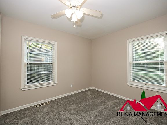 Fire pitBig trees for shadeNew carpetCeiling fanTile bathroom floorLarge windowsHardwood kitchen floor