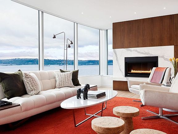 Exquisite, high-level, 3 bdrm 2 1/2 ba, offers unobstructable views over Pike Place Market to Elliott Bay and Mt. Rainier. Meticulously re-designed by the NB Design Group, the flowing floor plan opens impeccably to the incredible views. An unusually large kitchen w/ top-of-the-line appliances complete this luxurious home. Two large parking spots, 24/7 concierge, on-sight management, gym and a pool create an easy lifestyle. Schultz-Miller completed the top to bottom remodel in 2015.