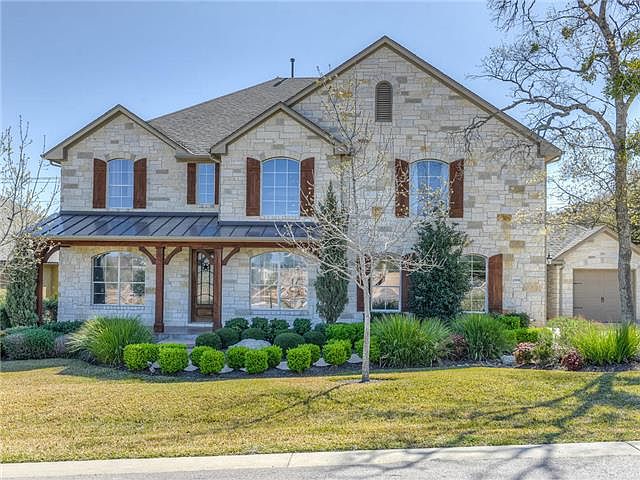 WOW! FORMER MODEL HOME! Beautifully landscaped! Tiled front & back porches. Amazing outdoor living space equipped w/ a covered seating area & fireplace! Deck w/ perimeter seating & a private yard w/ landscape lighting & sprinkler system! Dramatic staircase, soaring 2nd story ceilings, crown, chair & picture moldings, wall of windows, beautiful Mocca wood flooring, granite counters & gourmet kitchn w/SS Appl. Office & Spacious Master w/ lavish bath & HUGE Closet Down. Game room & desk area up.