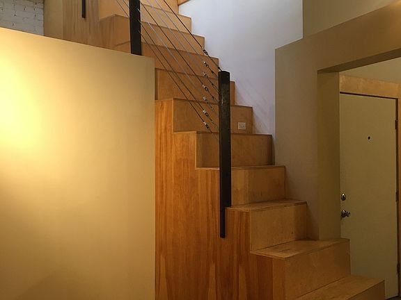 Large open-floor space loftCarpeted and tiled floorsStainless steel appliancesWalk in closetClerestory windowsWasher and dryerBuilt-in bookshelves