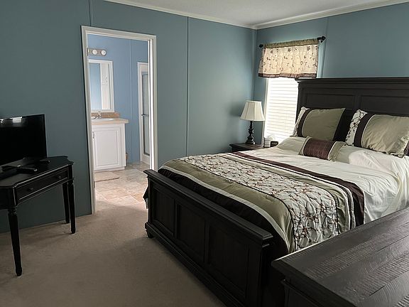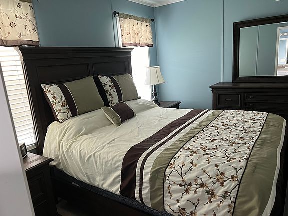 Fully furnished mid-term rental (min. 30 days) manufactured home in 55+ Resort Style Community. All renters must be 55 or older, residency application with background check required (fees paid by tenant). Access available to community amenities including pools, hot tubs, golf courses (greens fees not included), clubhouse, workout facility and special events. Rental is 3 bedroom, 2 bathroom, has a screened in Lenai, washer and dryer and golf cart. Rental includes electric, water & sewer.