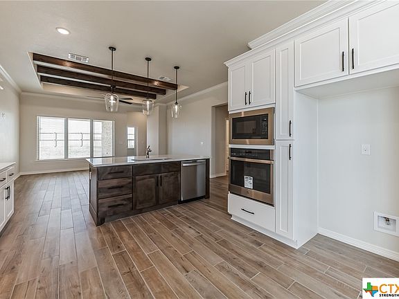 Impress your guests as soon as they step into your home! The Tyler plan features a beautiful front dining room with tons of natural light and an art niche in the entryway to highlight your home decor. Located in Mesa Ridge and Belton ISD, this plan is a 4BR/2BA with 2-car garage, and 1886 sqft. Additional features include spray foam insulation, crown molding, wood-look ceramic tile flooring in main areas, ceiling fans, granite countertops, custom soft-close cabinets and drawers, cooktop and vent hood, built-in oven and microwave, automatic sprinkler system and fully sodded yard with landscaping. Enjoy the convenience of nearby shopping, restaurants, schools, and Lake Belton!
