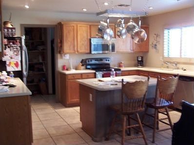 Corner lot with mountain views, N/S exposure, backyard has a built in fire place & BBQ, Heated pool/spa, covered patio, balcony, nice grass back yard with a sprinkler system, desert front, Spacious home has a gourmet kitchen with a island, huge pantry, laundry room with cabinets, family room with french doors opening to the resort like back yard, living room, formal dining room, 1 bedroom and half bath down stairs, upstairs master bedroom has french doors also a balcony, nice deep tub with jets,