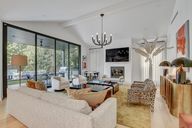 - Ceiling Fan(s), Beamed Ceilings, High Ceilings, Vaulted Ceiling(s), Chandelier, Quartz Counters, Gas Dryer Hookup, Entrance Foyer, Kitchen Island, Pantry, Primary Bedroom on Main, Recessed Lighting, Walk-In Closet(s), Wet Bar