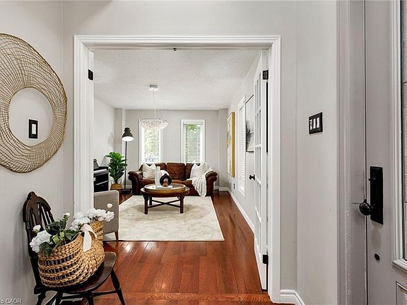 Corner unitSurrounded by mature treesProfessionally landscaped groundsWide-plank engineered hardwoodDark-stained staircaseUpdated light fixturesAbundant natural light