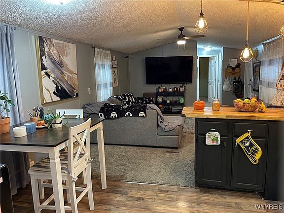 Move right in to this beautiful two bedroom two full bath mobile with tons of updates from newer gorgeous kitchen with plenty of cabinets and a solid butcher block countertop, all appliances included, kitchen has plenty of storage and has open concept into the living room with peninsula style counter with sitting stools, newer carpet and paint throughout, newer windows and more, master suite with awesome updated full bathroom that boasts a large walk in no step shower, home is move-in ready, great park family friendly with highly rated Iroquois schools, close to everything from East Aurora Village and the route 400 Thruway, must see, this is a truly wonderful home, don’t rent and throw your money away with an opportunity like this for under $50 K! The mobile home is a 1991 14x70 Commodore, Serial #CP21965, Model DZ044, open house Saturday 11/1 from 1-3. Negotiations to take place 11/08/2025 at 3PM.