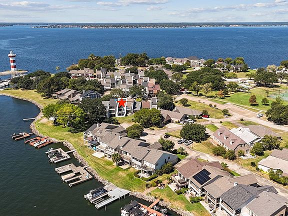 This stunning 3 bed, 3.5 bath townhome is located in the gated community of Harbour Town (Seven Coves) and features exquisite water views from the large 1st and 2nd story back patios. In the past two years, owners spent approx $100K on renovations including a new roof, LVP flooring, PEX piping system, kitchen cabinets, appliances, sheetrock, interior/exterior paint, insulation, water heater, electrical, beadboard paneling, molding, exterior patio turf, bathroom plumbing fixtures and vanities. The primary bedroom and a secondary bedroom, each complete with an ensuite bath, are on the 1st floor. The updated kitchen, dining, huge family, powder bath and utility room are on the 2nd floor. A 3rd bedroom, full bath and walk-in closet are located on the 3rd floor loft. This property is move-in ready with furniture/decor also available for sale (not incl). Neighborhood amenities include pool, tennis, pickleball, basketball, playground marina & more! This property and community are a MUST SEE!
