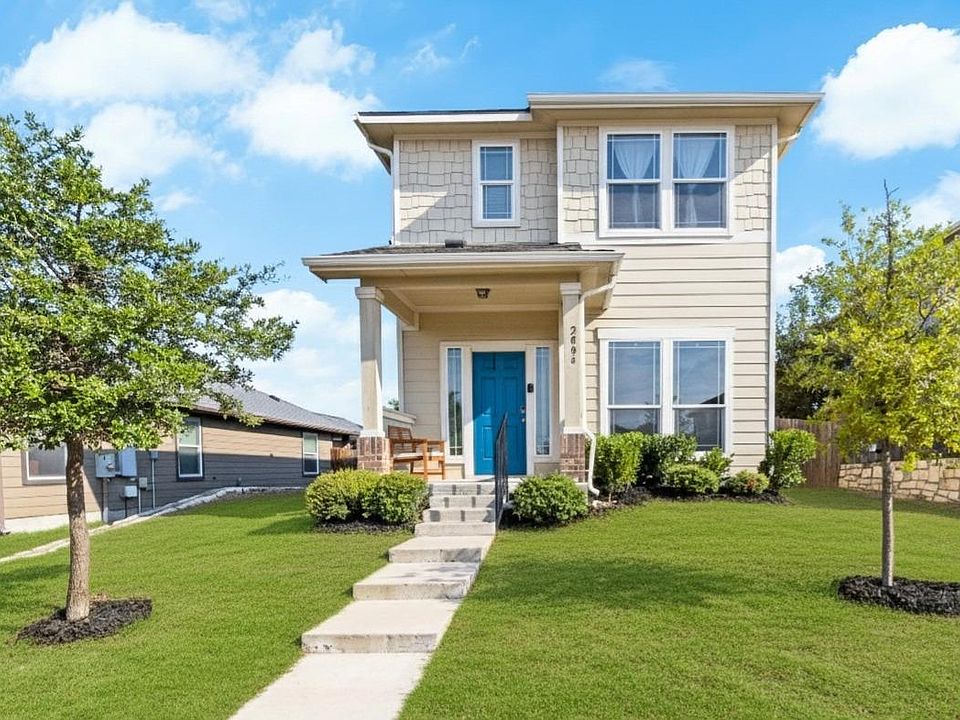 Spacious two-story home in Pioneer Hills featuring 3 bedrooms and 2.5 bathrooms. Recently built with modern updates, including stylish lighting and abundant natural light throughout. Open concept living space on the main level with durable hard flooring, a dedicated laundry room, and a seamless flow for everyday living. Upstairs are the primary bedroom and additional bedrooms. The detached two-car garage accessed from the alley enhances the home's charming, community-oriented feel. Ideally located less than a block from the amenities center, offering a pool, splashpad, basketball courts, and playground. Enjoy the community pond and walking trails for outdoor leisure. A fantastic home in a vibrant, family-friendly neighborhood!