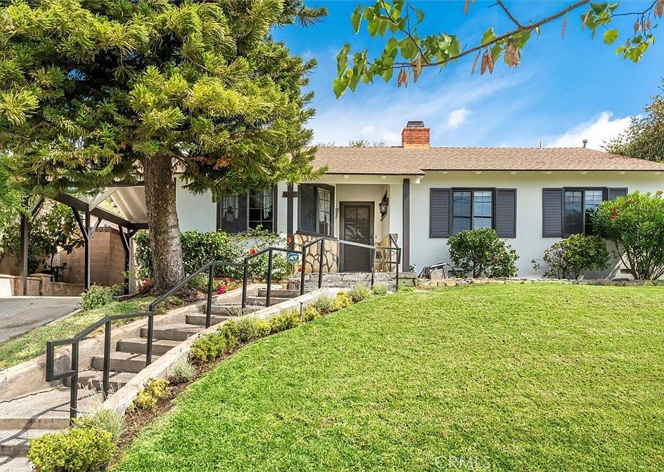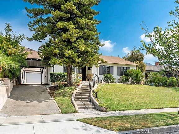 Best location in Burbank! Discover the charm of Burbank with this single-story home located above Glenoaks Blvd. Situated on a spacious lot, this 3-bedroom, 2-bath residence has approximately 1,600 sq. feet and offers a seamless open floor plan. Enjoy the cozy living room featuring a fireplace, high ceiling, and a skylight, or unwind in the step-down family room that is adjacent to a guest bathroom as well as the back patio and yard. The kitchen features quartz countertops and backsplash, custom oak cabinets with pull-out drawers, and ample counter space, and is adjacent to the eat-in kitchen as well as to the formal dining room. Refrigerator and a newer washer and dryer are included. Outside, enjoy the covered back patio and backyard with mature fruit trees, ideal for relaxation and entertaining with plenty of shade. The long, private driveway leads to the detached garage. The garage, which features two large areas and a pedestrian door to the back yard, presents potential for an ADU. The home’s exterior was recently painted, and main sewer line is only about six years old. This is the Burbank location you’ve always wanted, and it’s close to schools, shopping, and transportation – don’t miss out!